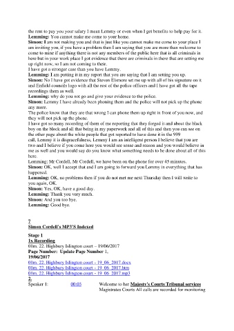 Simon: OK, well I accept that and I am going to forward you Lemmy in everything that has