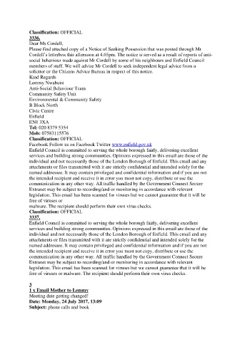 social behaviour made against Mr Cordell by some of his neighbours and Enfield Council