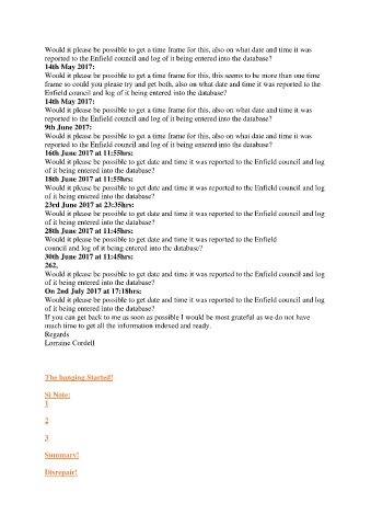 Would it please be possible to get date and time it was reported to the Enfield council and log