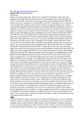 upset due to knowing that PC G had not told the truth the Judge asked for all documents the