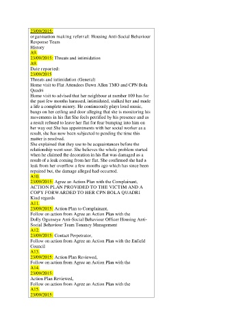 23/09/2015: Action Plan to Complainant,