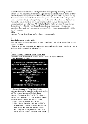 Statement of Terence Conway, process server / New 2 Injunction / Indexed
