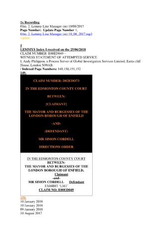 LEMMYS Index I received on the 25/06/2018