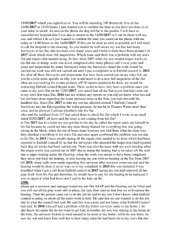 to his flat. In 2015 I have emails stating all the repairs that needed to be done which had been
