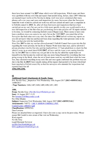 Since Dec 2017 to date my son has allowed around 5 Enfield Council Surveyors into his flat