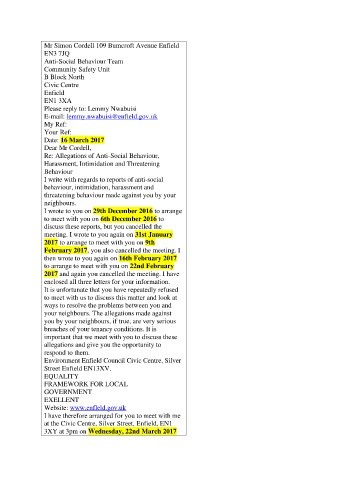 then wrote to you again on 16th February 2017