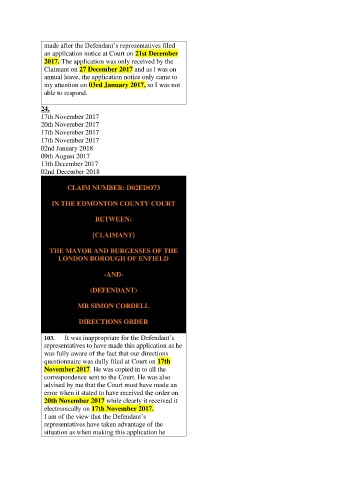 103. It was inappropriate for the Defendant’s