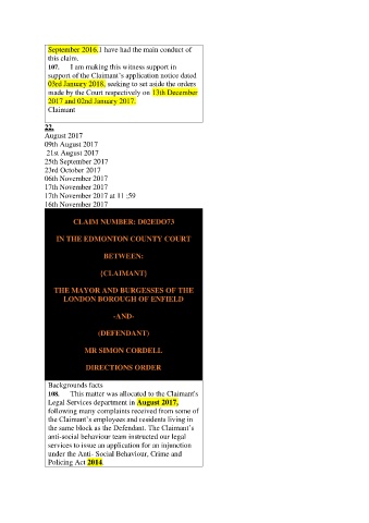 108. This matter was allocated to the Claimant's