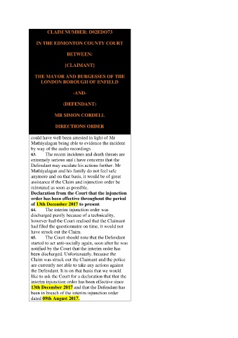 Declaration from the Court that the injunction
