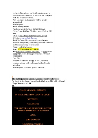 An Email to the Court House / Ludmilla lyavoo RE: LBE v Cordell