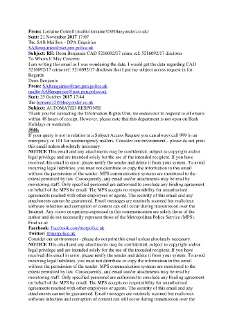 Subject: RE: Deon Benjamin CAD 5216092/17 crime ref: 5216092/17 discloser