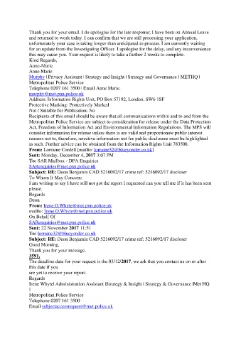 Subject: RE: Deon Benjamin CAD 5216092/17 crime ref: 5216092/17 discloser