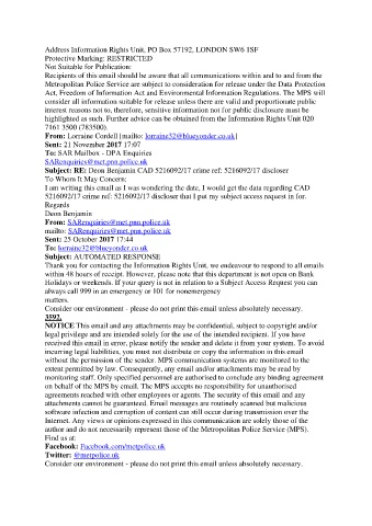 Subject: RE: Deon Benjamin CAD 5216092/17 crime ref: 5216092/17 discloser