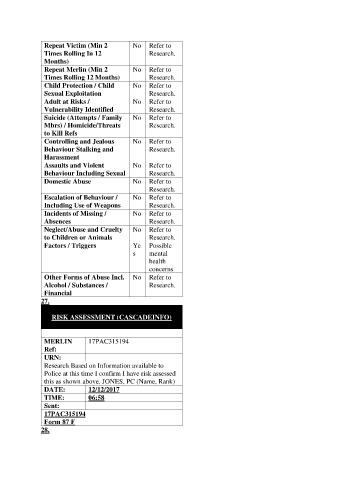 Police at this time I confirm I have risk assessed