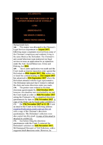 the claim and some directions order was made.