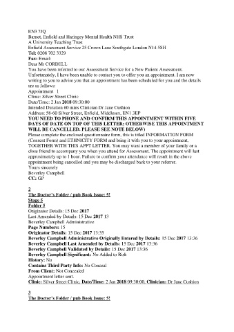 Clinic: Silver Street Clinic, Date/Time: 2 Jan 2018 09:30:00, Clinician: Dr Jane Cushion