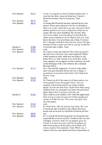 New Speaker: 06:33 in forcing that blood test because I phoned up my past