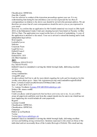 I am the solicitor in conduct of the injunction proceedings against your son. It is my