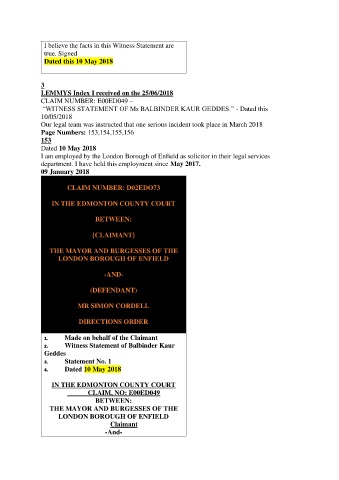 “WITNESS STATEMENT OF Ms BALBINDER KAUR GEDDES:” - Dated this