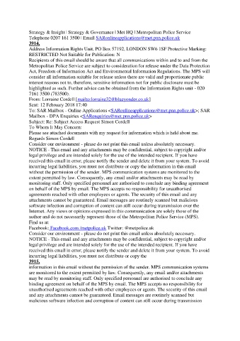 Telephone 0207 161 3500 | Email SARonlineapplications@met.pnn.police.uk