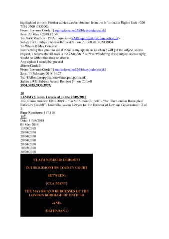 117- Claim number: E00ED049 – “To Mr Simon Cordell” - “Re: The London Borough of