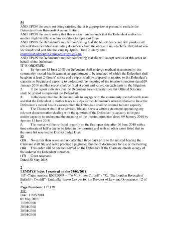 5. The matter will be re-listed urgently on the first open date after 20 June 2018 with a