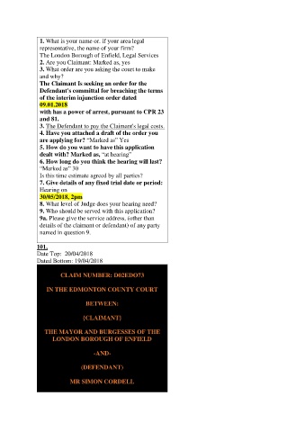 The Claimant Is seeking an order for the