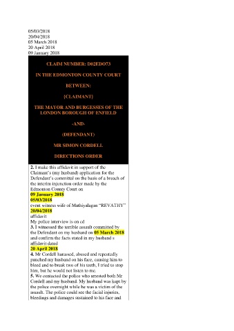 the Defendant on my husband on 05 March 2018