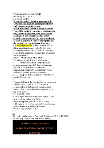This order shall remain in force until 8th January 2019 at 11:59 PM