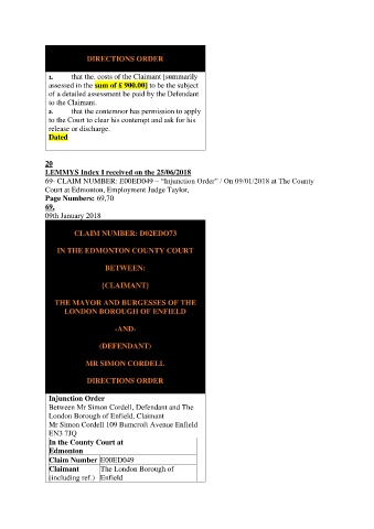 69- CLAIM NUMBER: E00ED049 – “Injunction Order” / On 09/01/2018 at The County