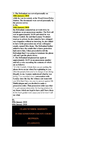 5. The Defendant telephoned me again at