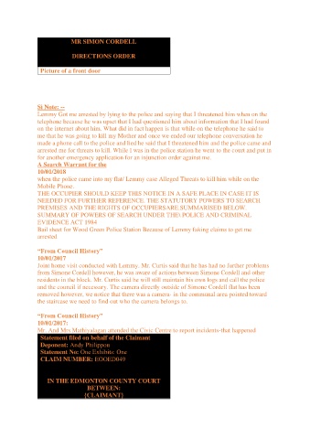 Bail sheet for Wood Green Police Station Because of Lemmy faking claims to get me