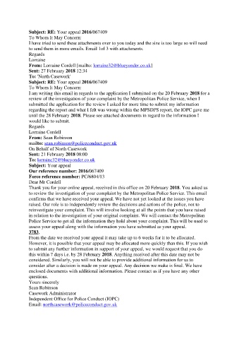to review the investigation of your complaint by the Metropolitan Police Service. This email