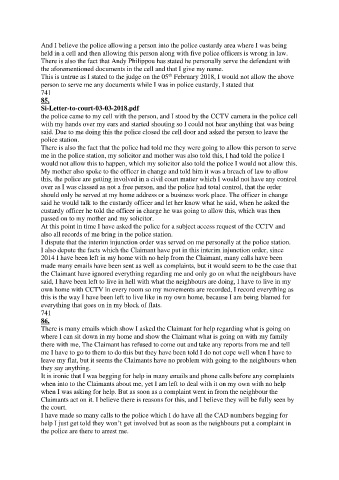 This is untrue as I stated to the judge on the 05 February 2018, I would not allow the above