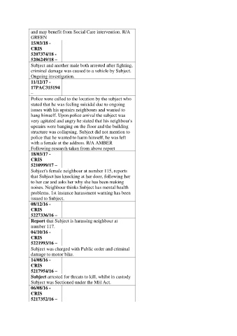 noises. Neighbour thinks Subject has mental health