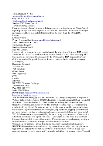 Please see forwarded email from the solicitors', who were acting for my son Simon Cordell
