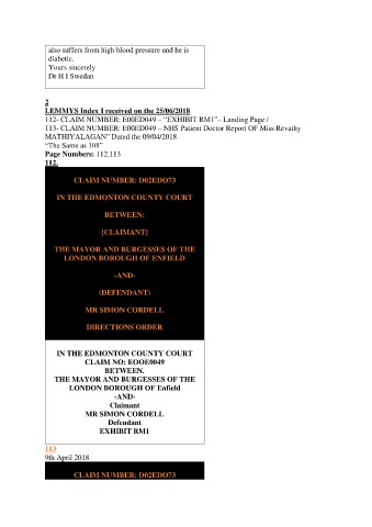 113- CLAIM NUMBER: E00ED049 – NHS Patient Doctor Report OF Miss Revathy