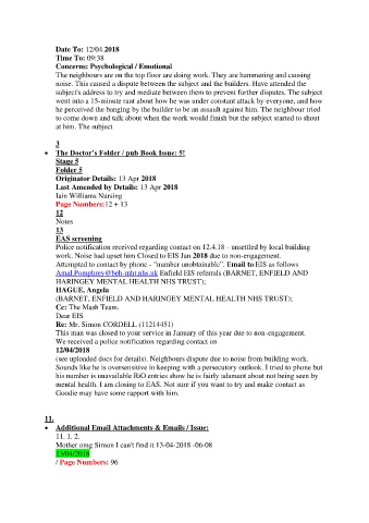 noise. This caused a dispute between the subject and the builders. Have attended the