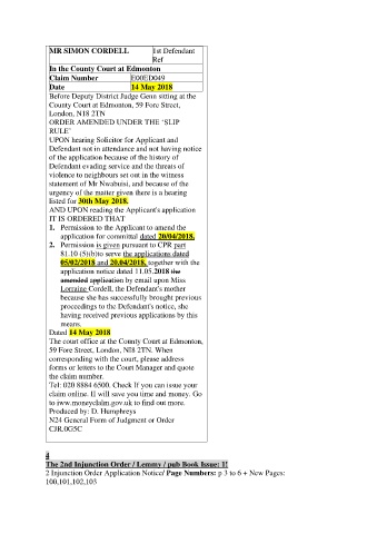 2 Injunction Order Application Notice/ Page Numbers: p 3 to 6 + New Pages: