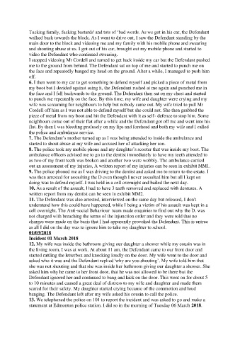 I stopped videoing Mr Cordell and turned to get back inside my car but the Defendant pushed