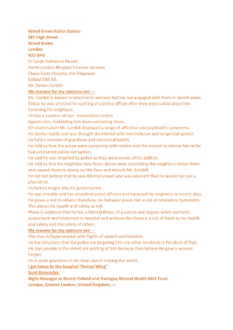Mr. Cordell is known to psychiatric services but has not engaged with them in recent years.