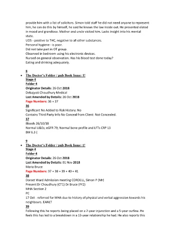 provide him with a list of solicitors. Simon told staff he did not need anyone to represent