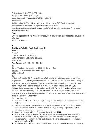 Platelet Count 298 x 10‘9/L (130 - 450) F