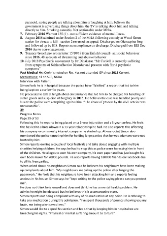 Simon feels he is in hospital because the police have “falsified” a report that led to him