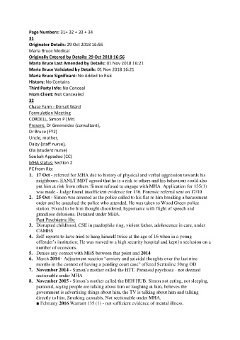 7. November 2014 - Simon’s mother called the HTT. Paranoid psychosis - not deemed