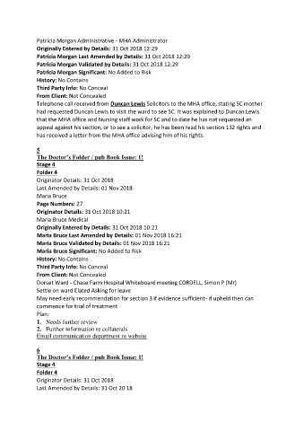 had requested Duncan Lewis to visit the ward to see SC. It was explained to Duncan Lewis