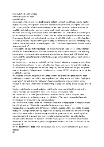 paperwork.” He feels that his neighbours have been attacking him and reports feeling