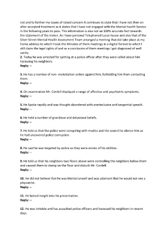 7. He told us that the police were conspiring with medics and the council to silence him as