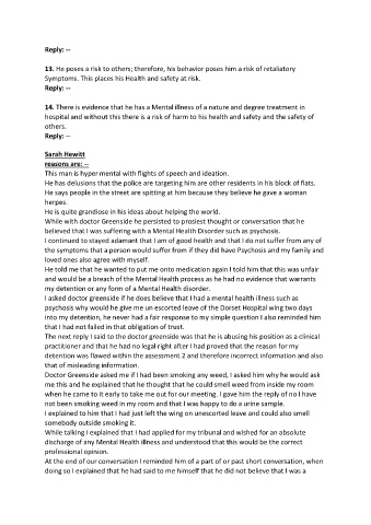 14. There is evidence that he has a Mental illness of a nature and degree treatment in