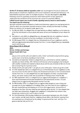 physical abuse towards his neighbours and council employees and antisocial behaviour. He